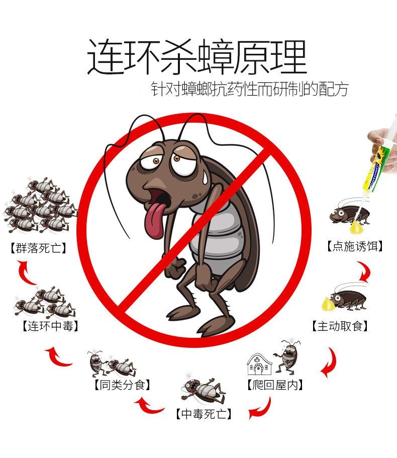 投放毒餌是常用的一種簡便的滅蟑螂的方法,但要使用得當(dāng),訣竅是“量少、點(diǎn)多、面廣”,即是在一間房內(nèi)投毒點(diǎn)多一些,每個點(diǎn)上用藥量少些,分布面要廣些。這樣蟑螂從棲息場所爬出來就能吃到毒餌,殺滅效果顯箸。為了防止毒餌受潮失效,宜將毒鉺顆粒盛放在瓶蓋里布放。用含殺蟲劑的粉筆劃在蟑螂活動場所。在蟑螂棲息的縫、洞和角落周圍以及它們經(jīng)常活動的地方,用藥筆劃圈或“井”字,使蟑螂進(jìn)出可活動時都因沾上涂劃的粉跡而被毒死。涂劃的道不能太細(xì),應(yīng)為2—3厘米的粗線。